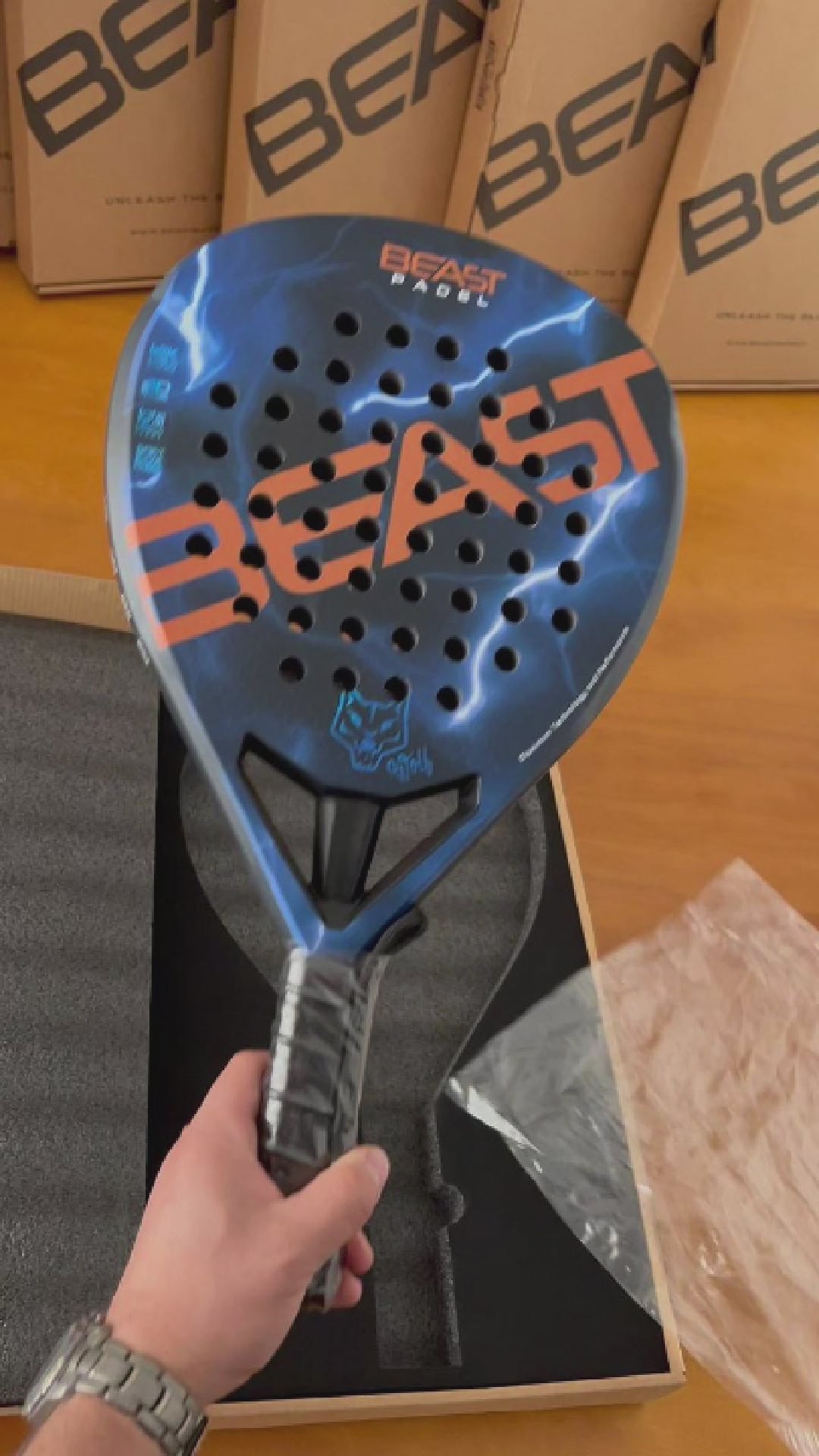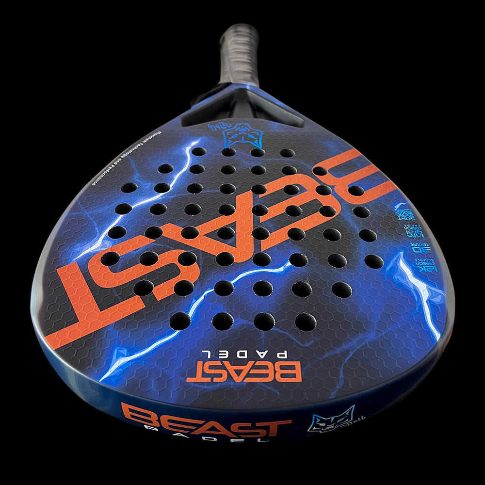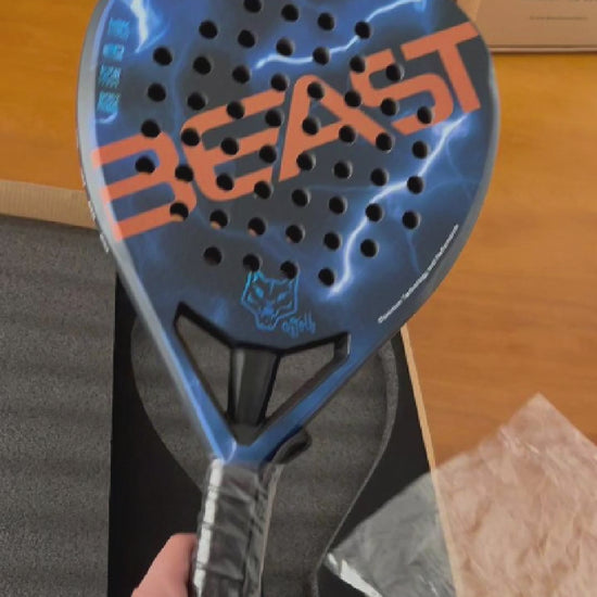Nuestra pala Beast Wolf con forma de lágrima es el punto intermedio entre una pala redonda (de control) y una pala con forma de diamante (potencia). Posee un núcleo de Soft Black Eva, con caras de carbono 12K para endurecer el tacto logrando una proporción inigualable entre ataque y control.
